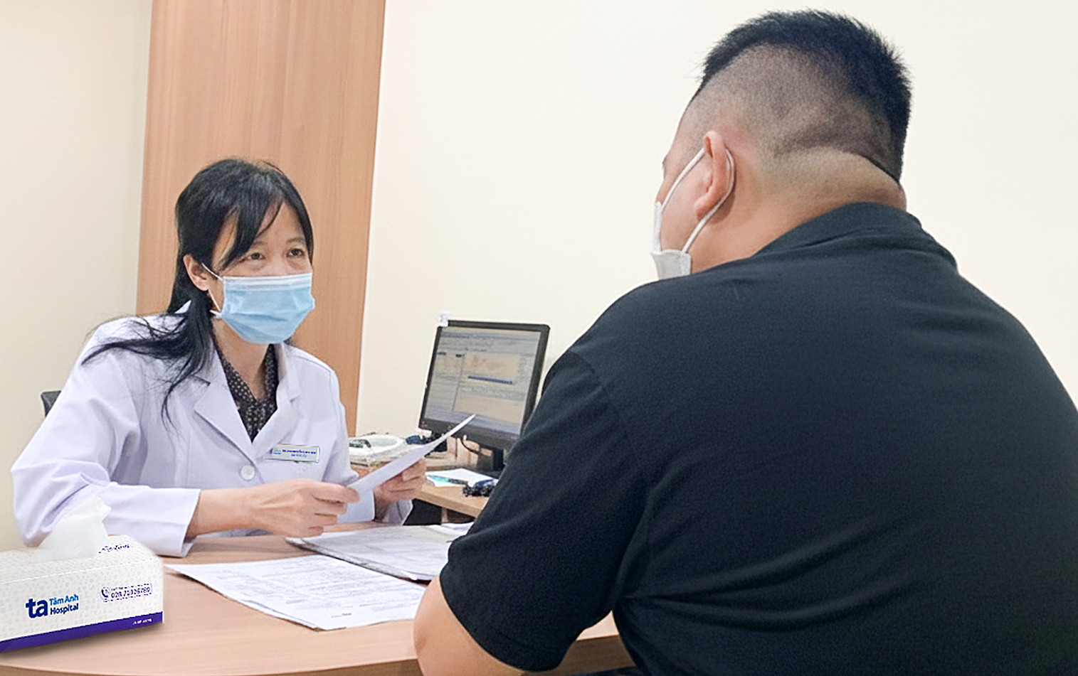 Doctor Ha advises Truong on his weight loss regimen. Photo: Tam Anh General Hospital