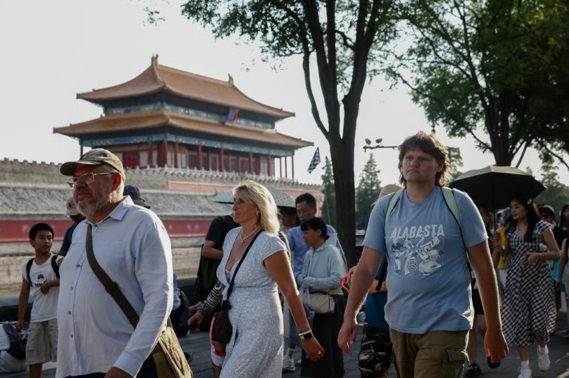 Foreign tourists walk near the Forbidden City in Beijing. Photo: EPA-EFE |