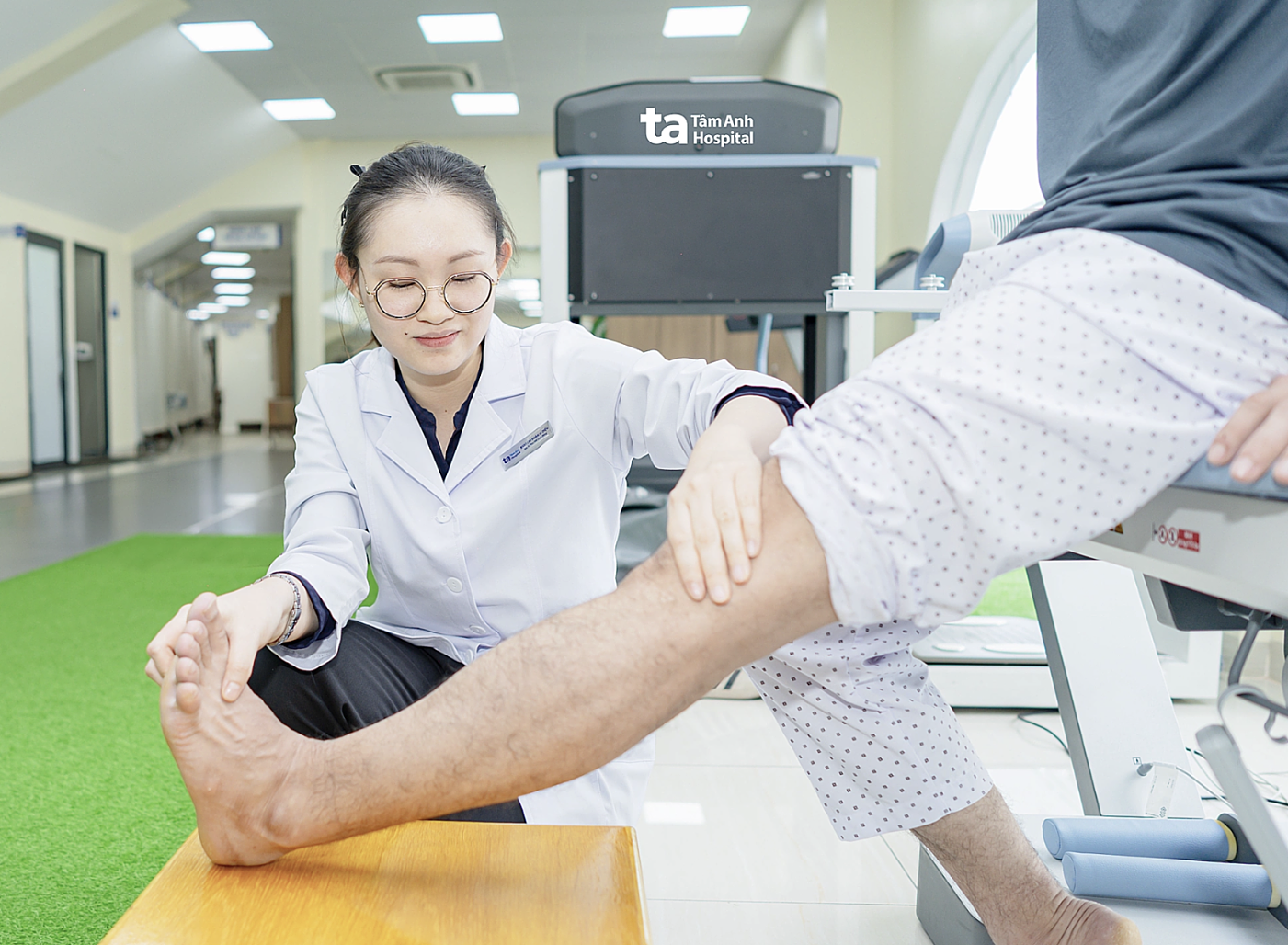 Doctors at Tam Anh General Hospital guide measures to improve and restore knee joints. *Photo: Hospital provided* |