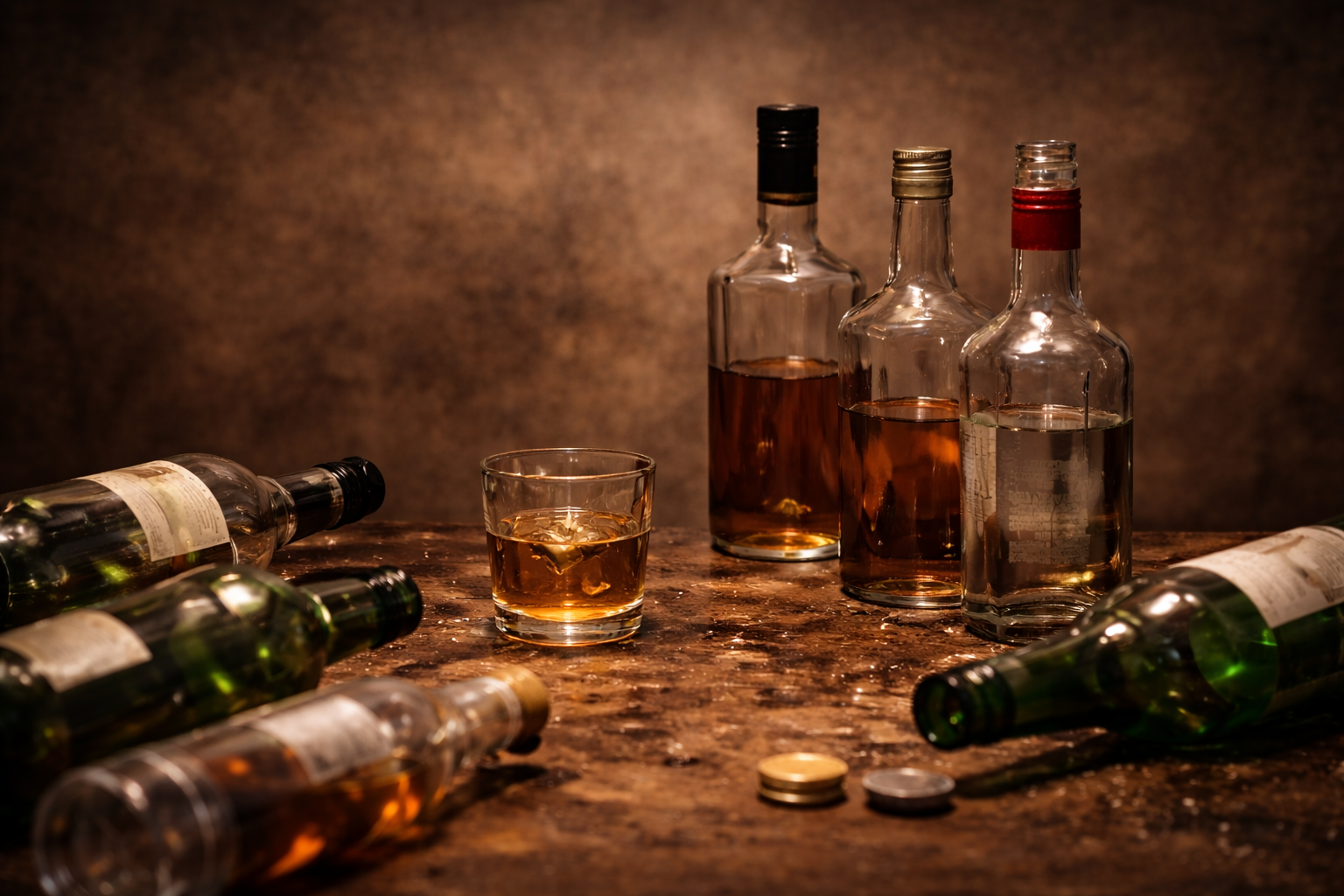 Consuming a large amount of alcohol in a short period increases the risk of acute alcohol poisoning. *Image created by AI* |