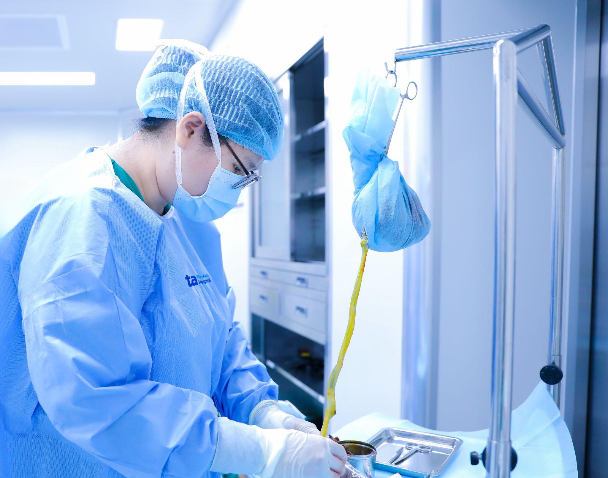 Staff at the Tissue Bank, Tam Anh General Hospital Ho Chi Minh City, collect cord tissue from a newborn for storage immediately after birth. Photo: Trung Vu |