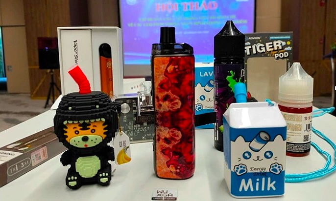 E-cigarettes are designed to be eye-catching, resembling toys or beverages. *Photo: Le Nga*
