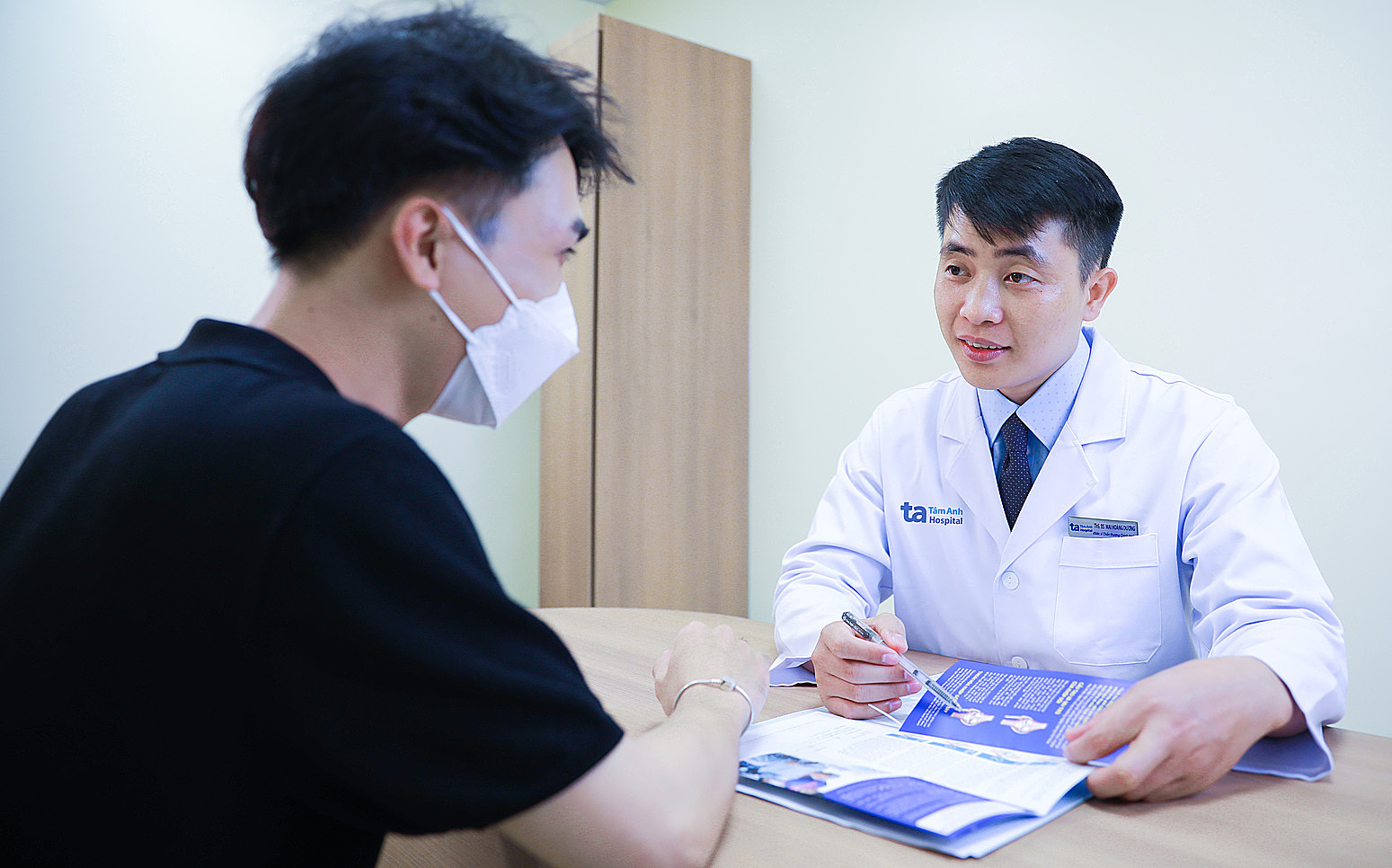 Doctor Loc explains a patient's joint condition. Illustrative photo: Tam Anh General Hospital |