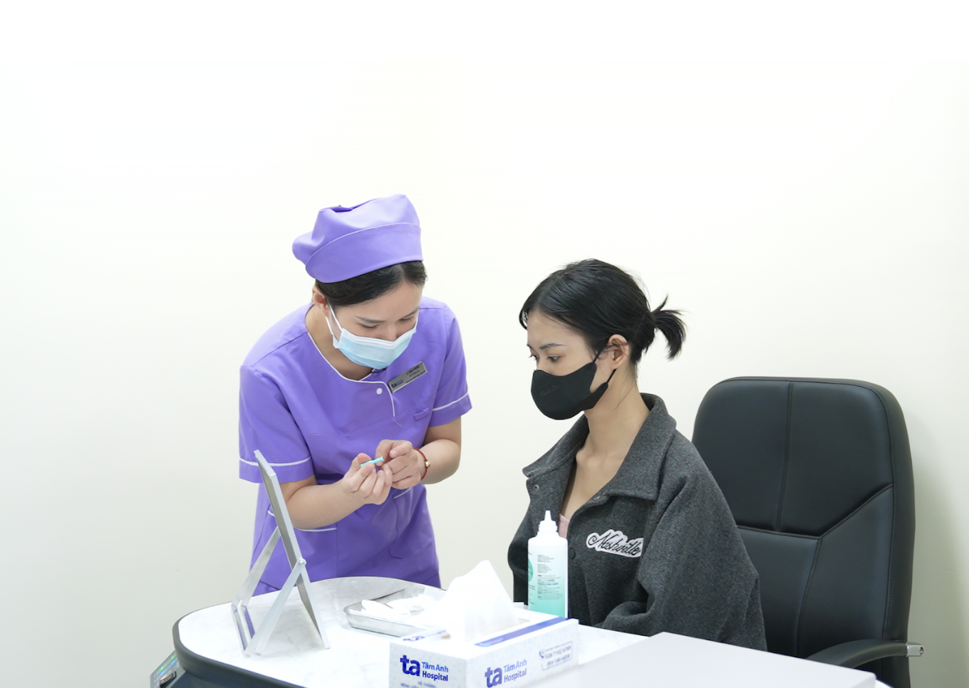 Medical staff guide a patient with keratoconus on how to use contact lenses. Photo illustration: Tam Anh General Hospital