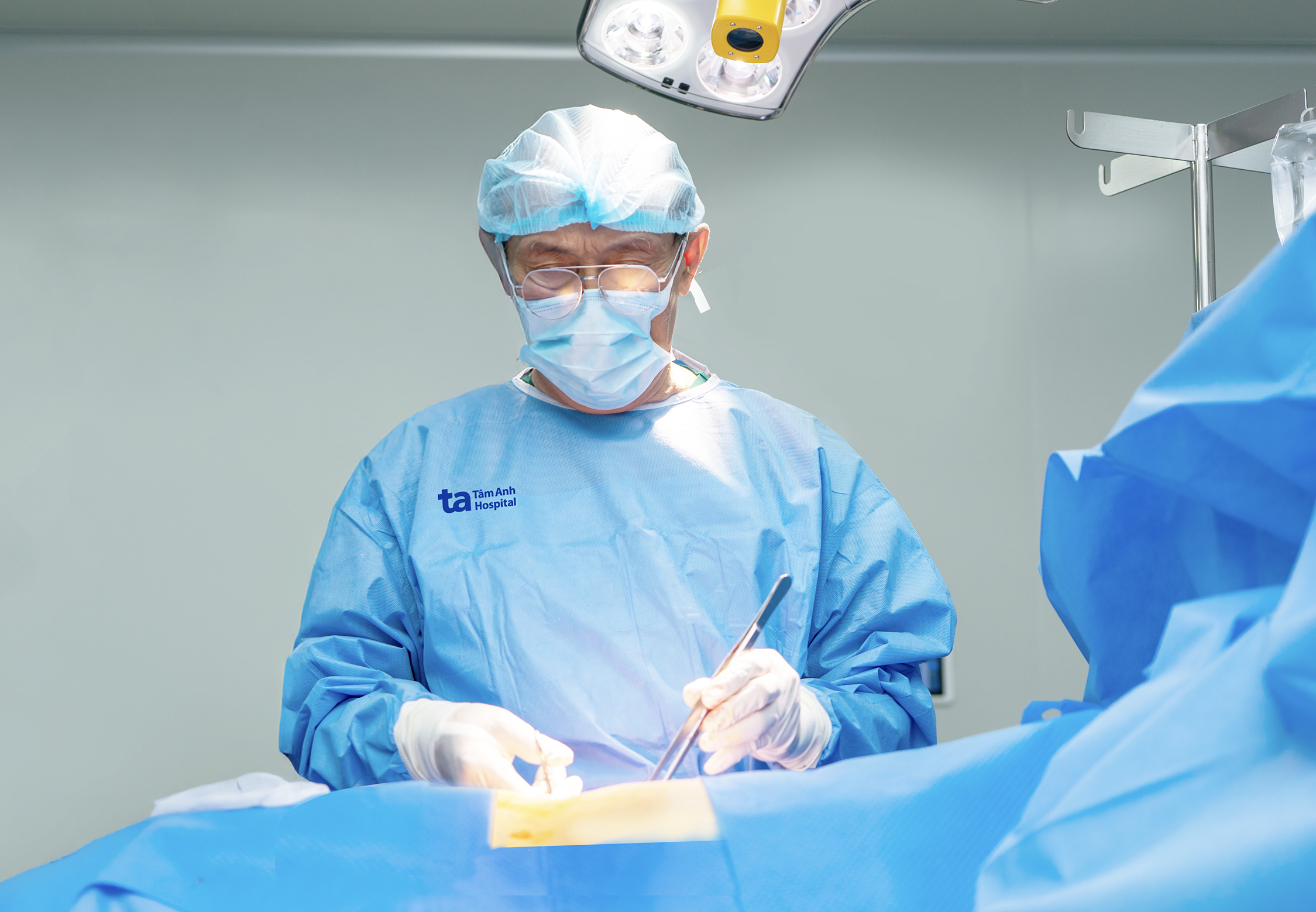 Associate Professor Chuyen performs laparoscopic kidney tumor removal surgery on a patient. Photo: Tam Anh General Hospital