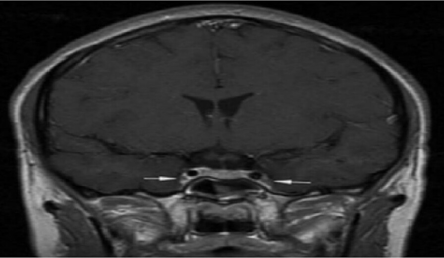 The arrows indicate inflammation and spasm of both internal carotid arteries. *Photo: Hospital provided*