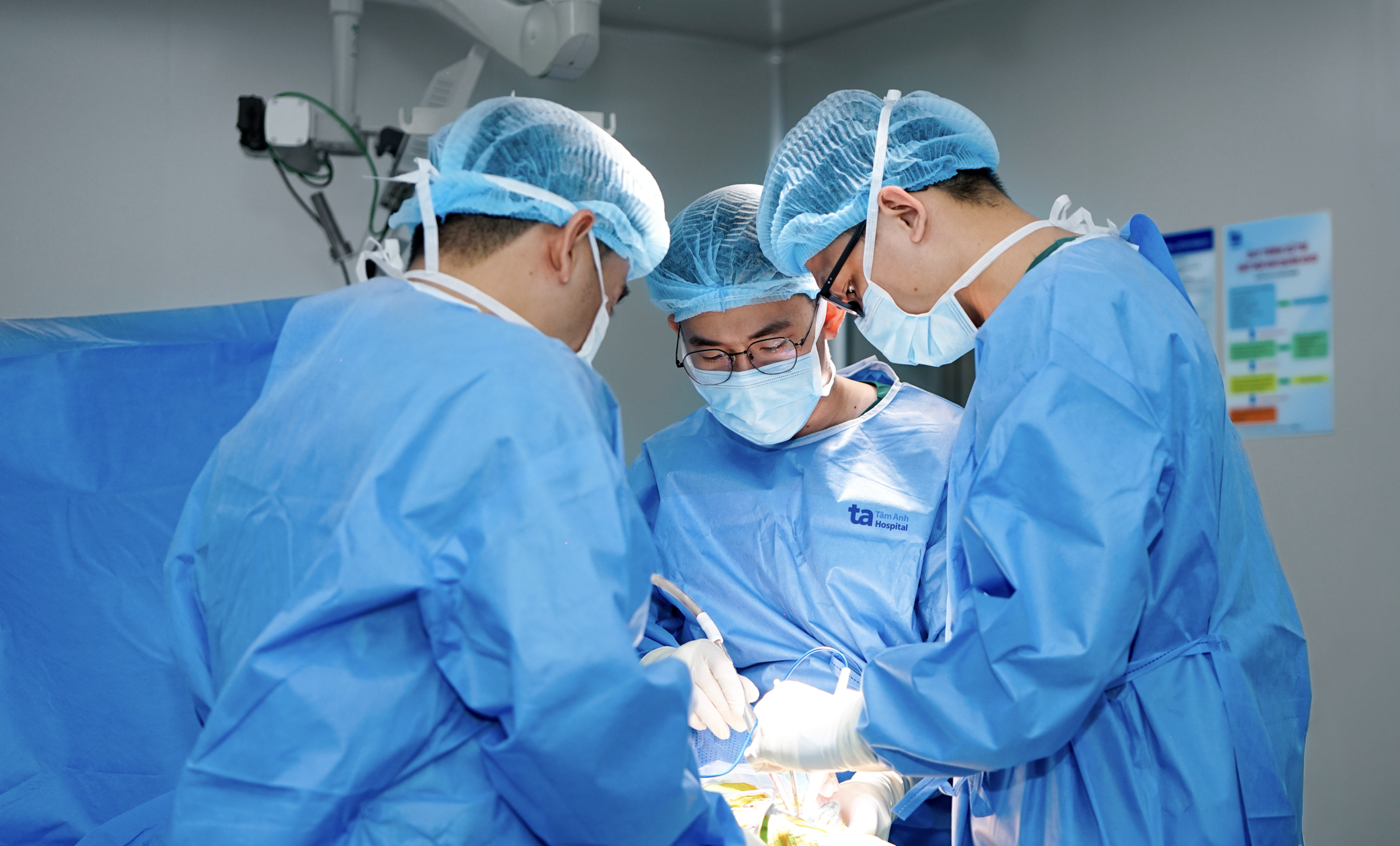 Dr. Thanh (center) performs surgery on the patient. Photo: Tam Anh General Hospital |