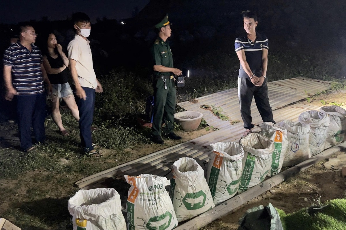 Two days prior, an inter-agency task force, including personnel from Binh Hai Border Post, Van Tuong Commune Police, and Coast Guard Region 2, apprehended Pham Van Hau, 37, who was transporting a sack typically used for animal feed. The sack contained approximately 20 kg of a gray, lumpy solid. The arrest took place at the intersection leading to My Giang restaurant, located along the coast of Thanh Thuy village.