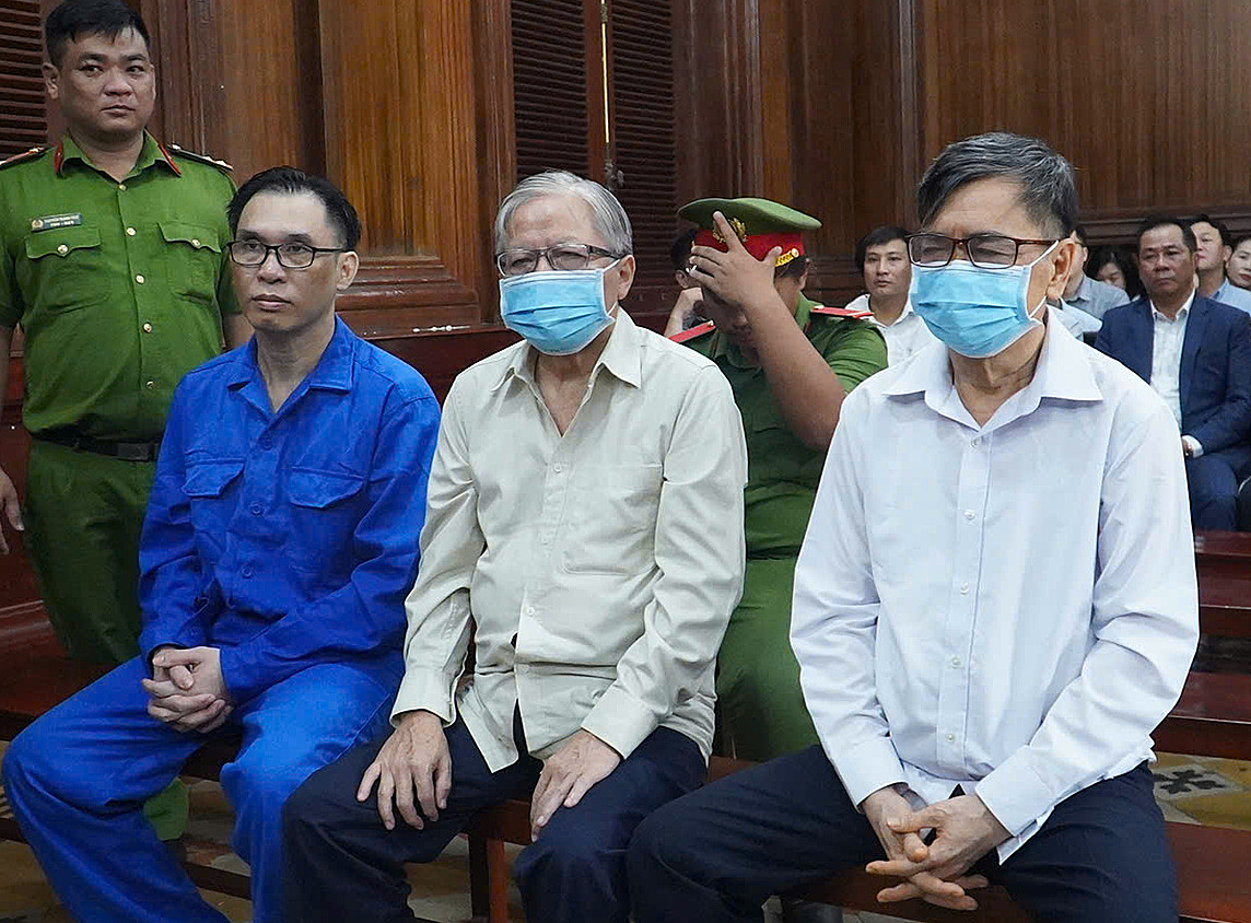 Dinh Truong Chinh (51, former chairman of the Board of Directors of Housing Development and Trading Joint Stock Company - HDTC), Huynh The Nang (66, former general director of Vinafood II), and Nguyen Tho Tri (64, former deputy general director of Vinafood II) are charged with violating regulations on the management and use of state assets, causing loss and waste.