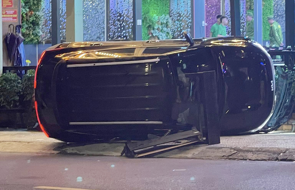 The oto overturned on the sidewalk after the crash. Photo: Minh Hoang