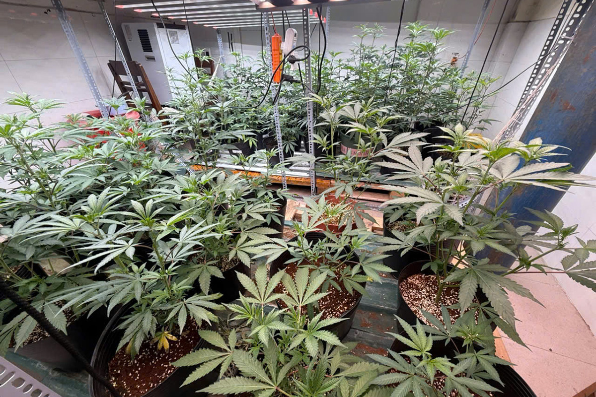 A search of a back room revealed 51 cannabis plants growing in an enclosed space, equipped with dedicated lighting and irrigation systems for cultivation.