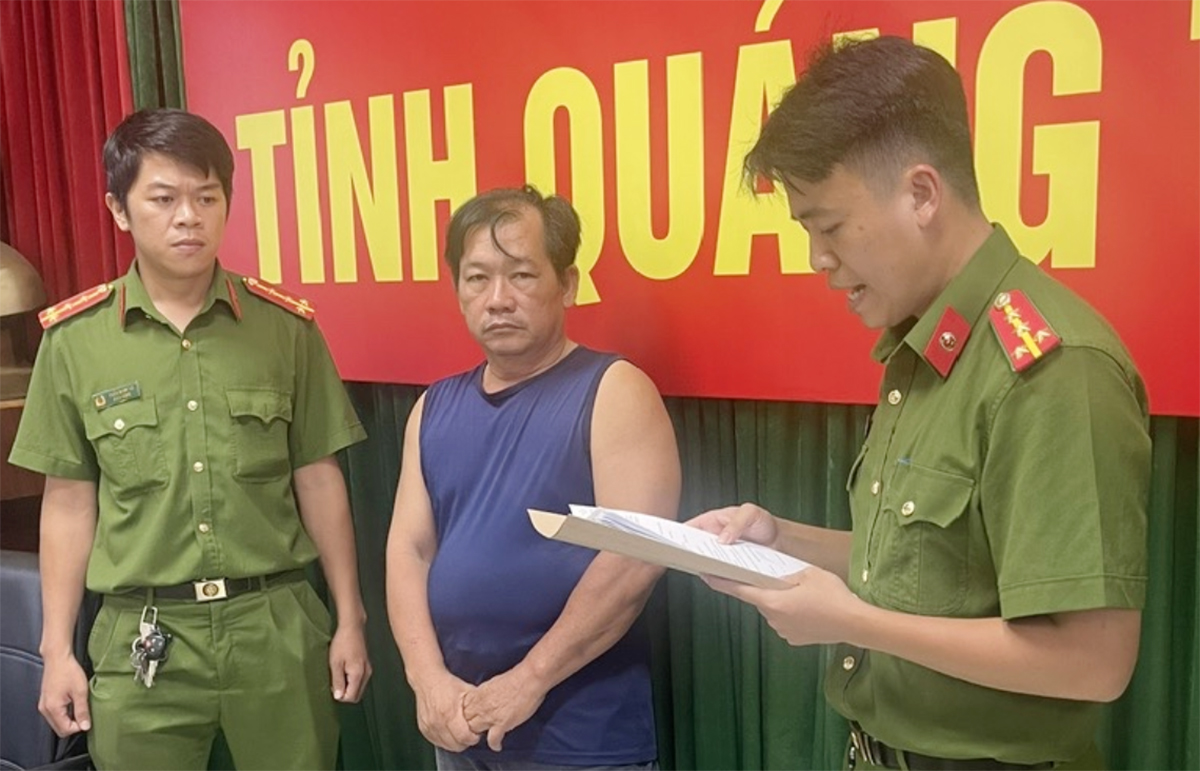 Investigators read the indictment to Tran Minh Hoang (center). Photo: Quang Tri Police |