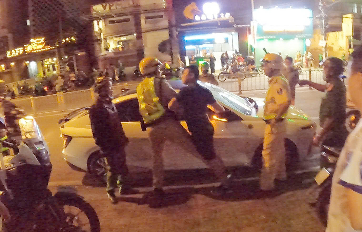 At the roadside, Hieu refused to undergo a breath alcohol test. Thanh, meanwhile, verbally abused the task force and insisted he was the driver. The incident escalated, causing a commotion that drew curious onlookers, who stopped to watch, film, and take photos, leading to traffic congestion in the area.