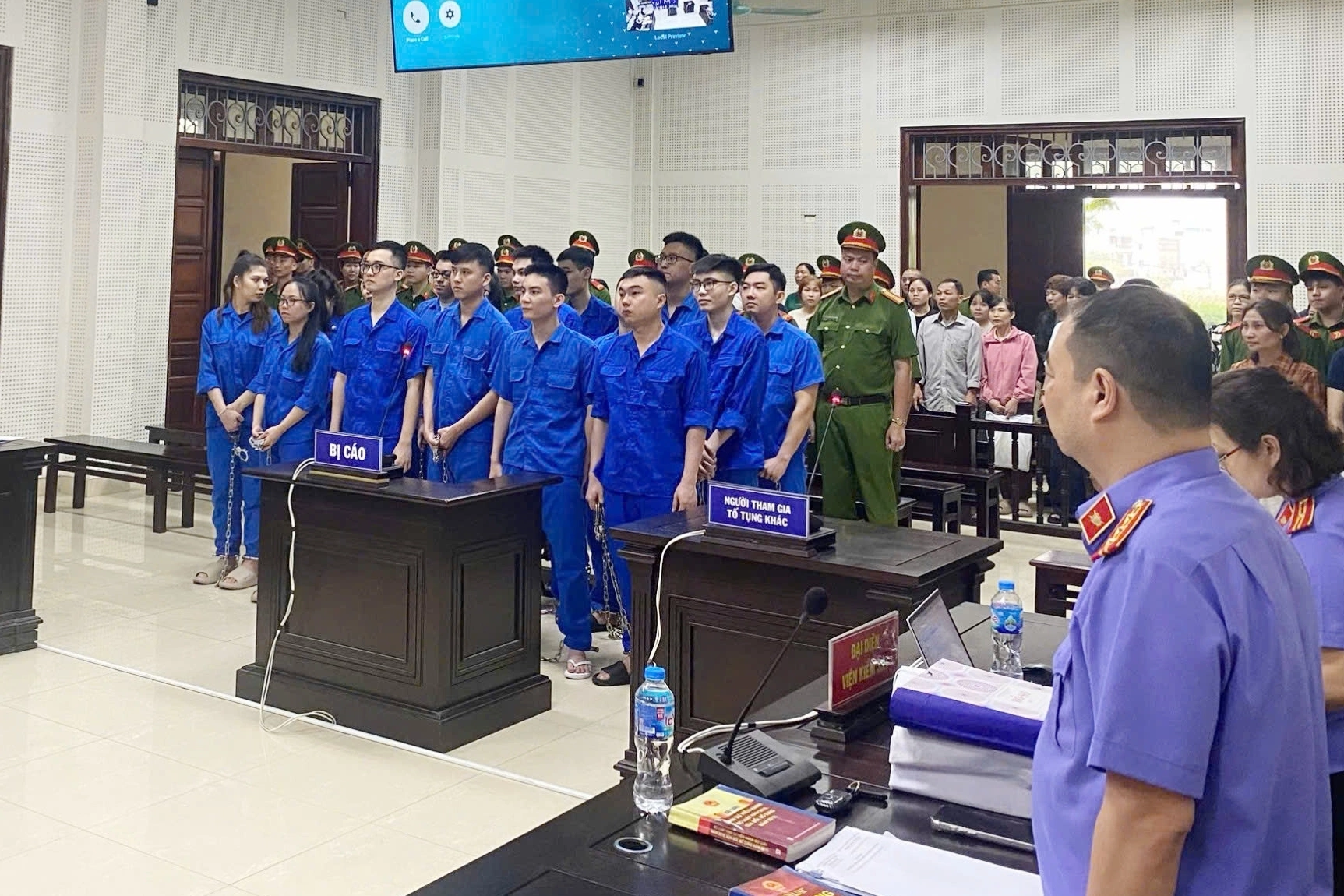 The criminal group selling cannabis via Telegram at the trial. Photo: Xuan Hoa.