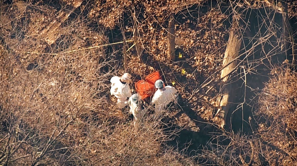 Around 8 a.m. on 5/2/2019, a highway crew in Greenwich, Connecticut, discovered a red suitcase hidden in the woods, 4 to 6 meters from the road. Its contents prompted an immediate 911 call.