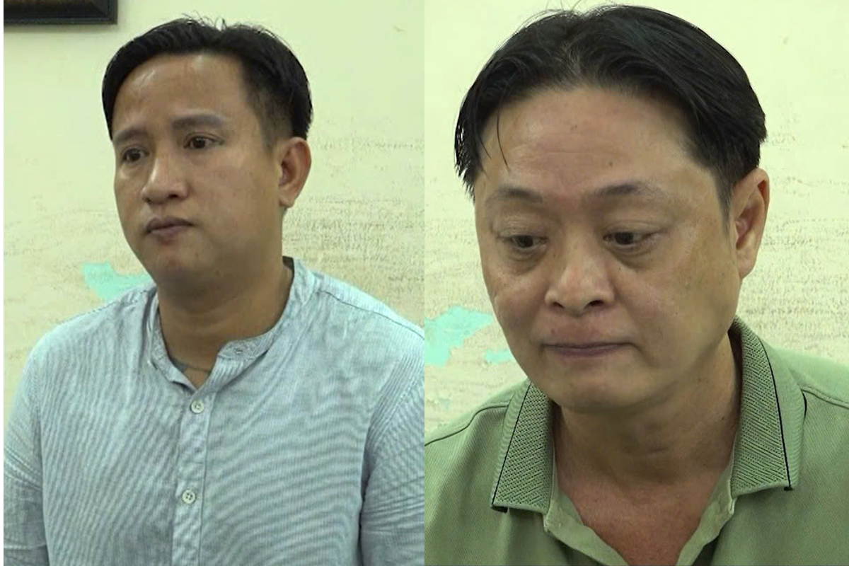 Nguyen Ngoc Hoa (left) and Nguyen Minh Thach at the investigative agency. Photo: Ho Chi Minh City Police |