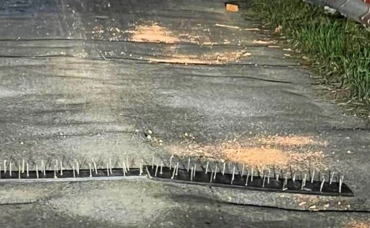 Tire spikes discovered by a passerby. Photo: Nam An |