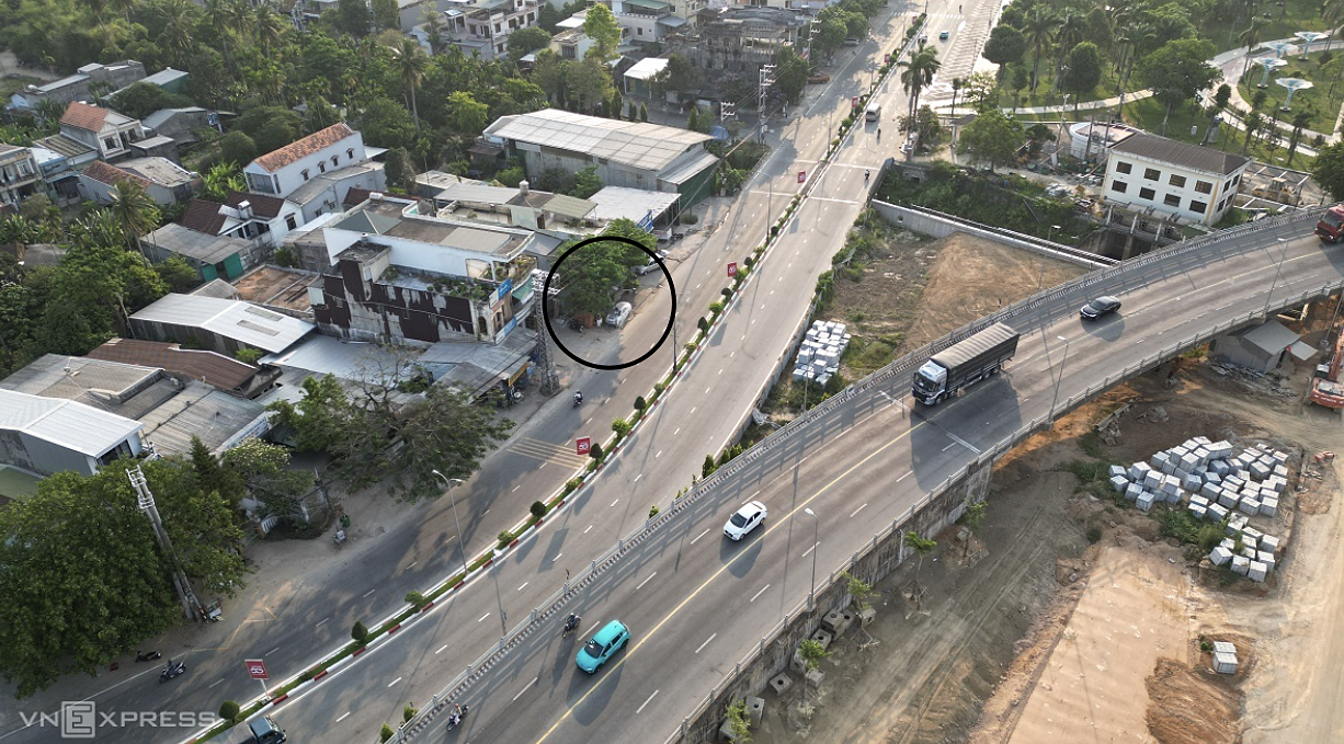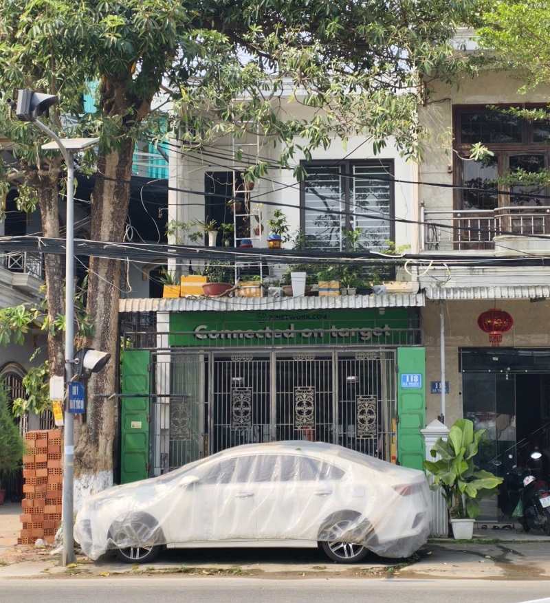 The house at 118 Ba Trieu (near a utility pole and trees, with a white oto in front) is located near Ba To Park in central Quang Ngai. Photo: Pham Linh |