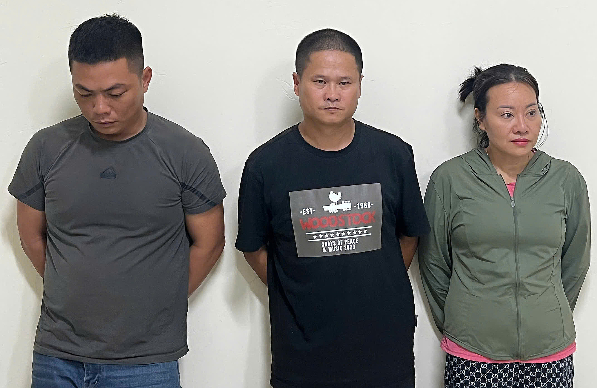 Cuong, Dao, and Vang (from left to right) at the police station. Photo: Police Department
