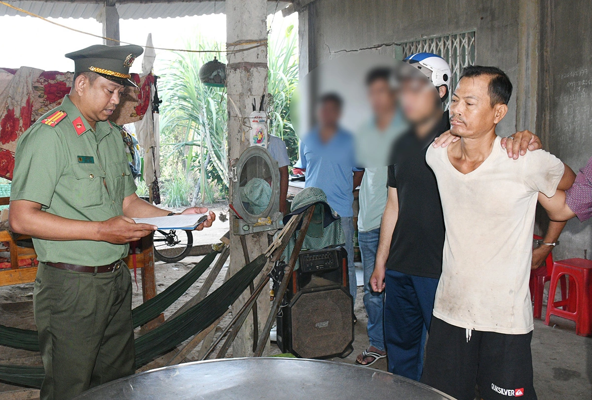 Vinh Long Provincial Police read the temporary detention order for Thach Chanh Tra. Photo: Ho Giang.