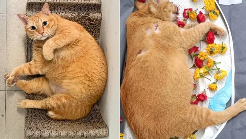 One of the six cats died after being abused by Tan and thrown from the 34th floor. Photo: CNA