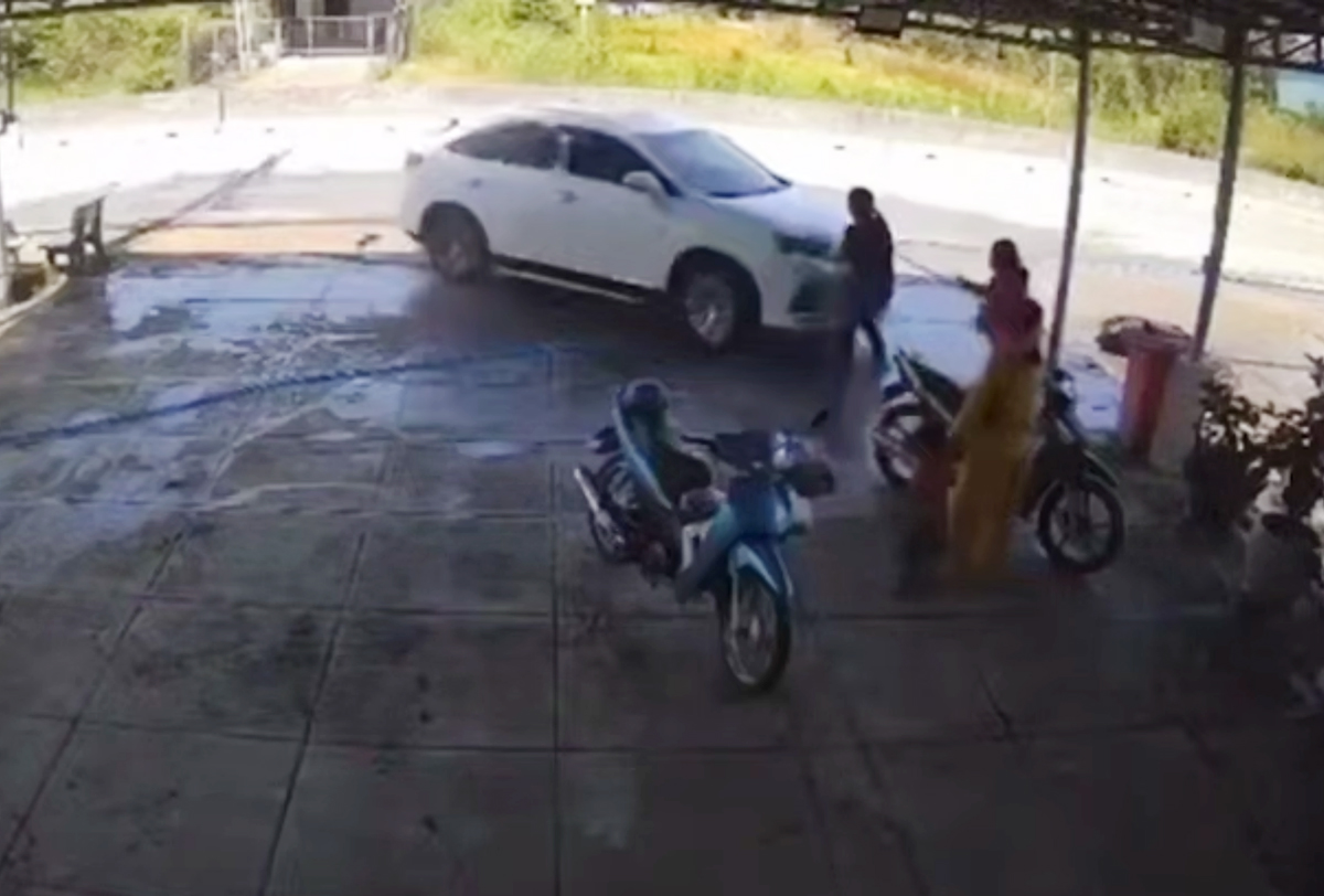 The impact knocked over a motorbike, and Thanh's sister, Nguyen Thi Be Sau, 42, was thrown off. The driver then reversed again, aiming for Hanh, but she managed to dodge. A child standing nearby panicked and screamed.