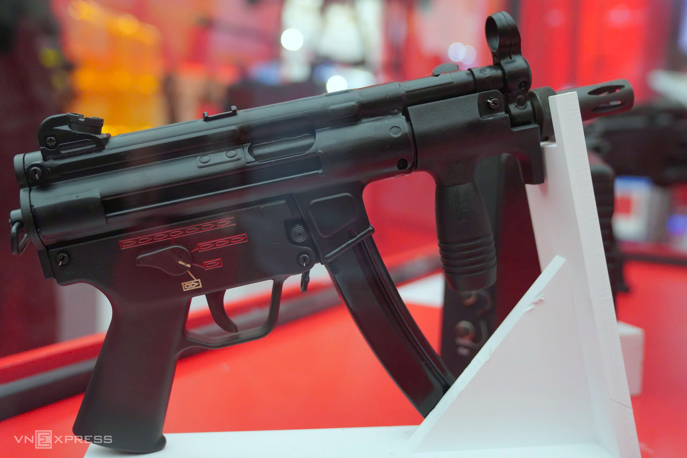 The MP5KN submachine gun: automatic, rapid-firing, and compact. With a range of 100 meters, it's used by security personnel for offensive operations and suppressing dangerous criminals. |