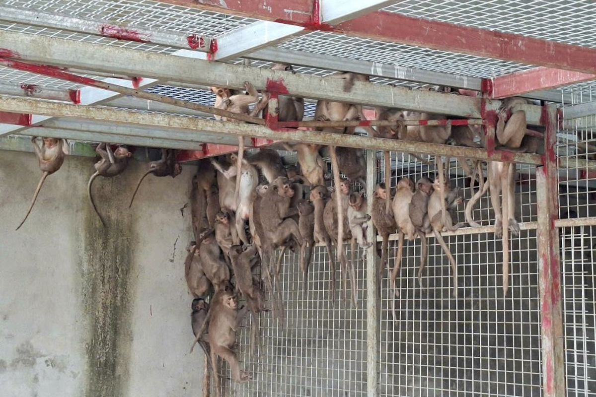 During the inspection, police discovered the vehicle was packed with 40 plastic cages containing: 14 hornbills, 16 otters belonging to Group IB, and 181 monkeys belonging to Group IIB. All are endangered, precious, and rare animals.