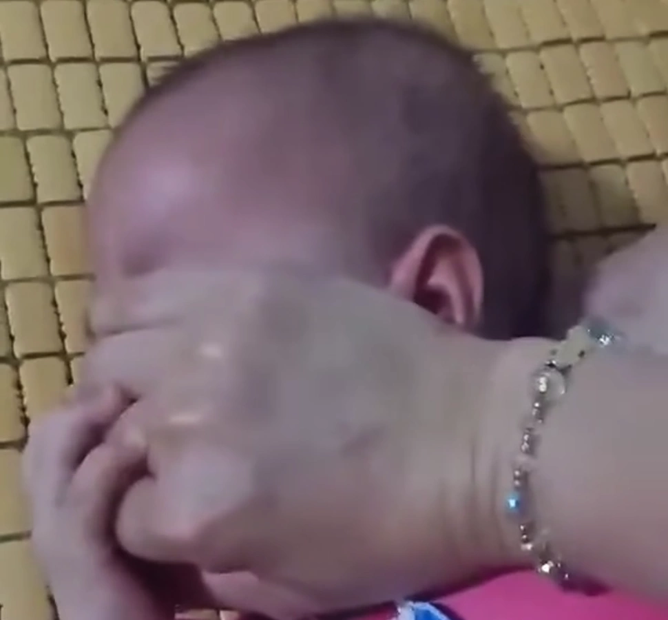 Earlier, a video spread across social media platforms, showing a girl lying on a bed. A woman used her hands to cover the child's face while recording with a phone. The child struggled, cried, her face turning red and showing signs of difficulty breathing. The woman then pulled the child, repeatedly squeezing her nose and mouth.