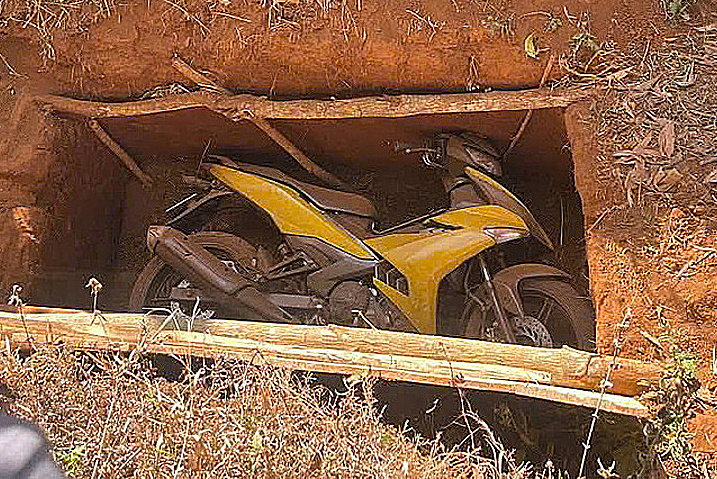 The two robbery suspects reportedly hid the Exciter motorbike in a pit. Photo: Gia Lai Provincial Police |