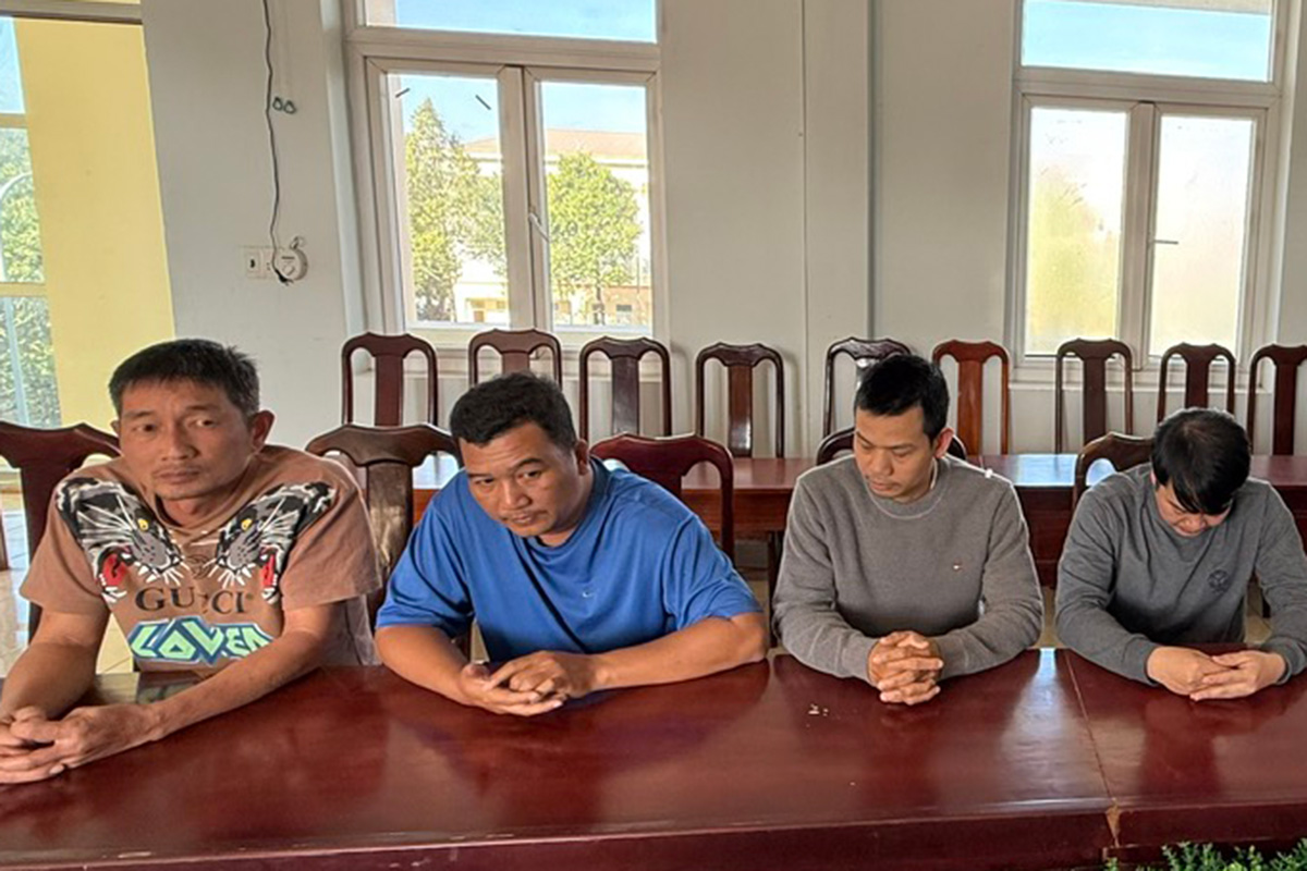 Four of the seven individuals detained by police. Photo: Ngoc Oanh