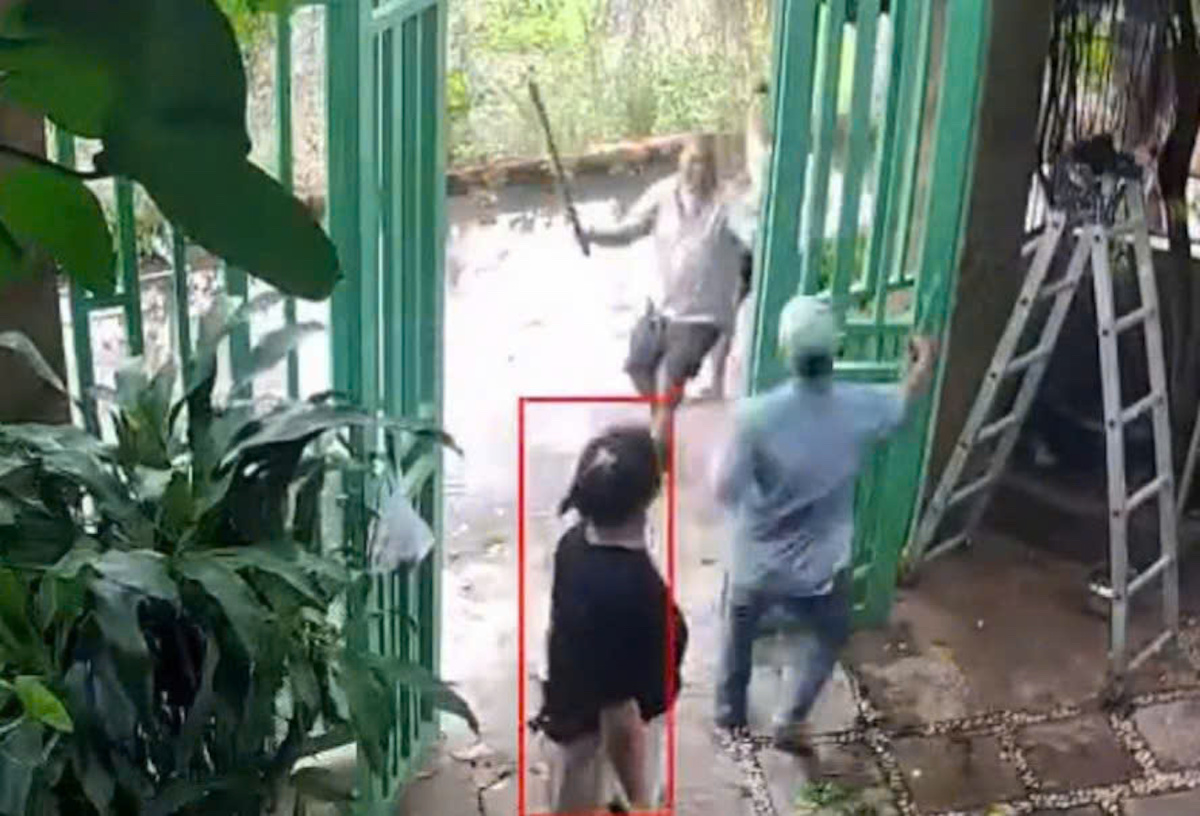 Tuan 'Troc' attacks a resident with a stick during a land dispute. Photo: Security camera |