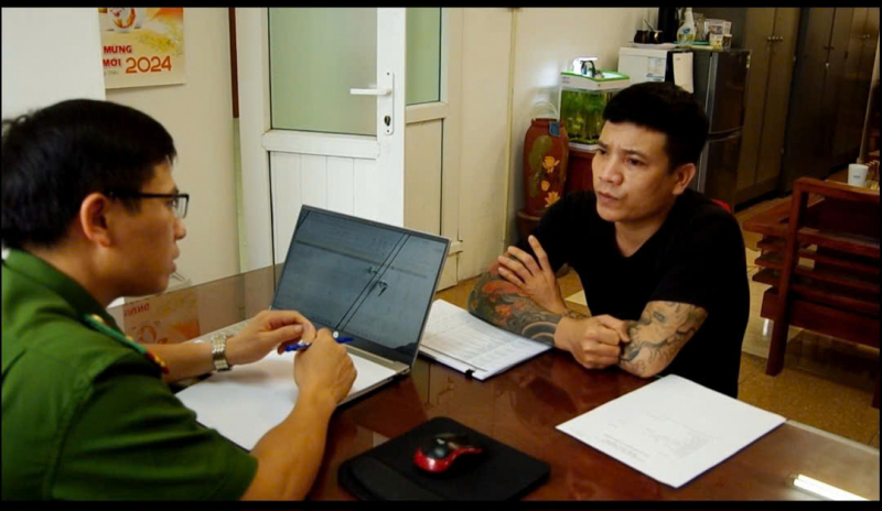Police interview Hoang Ta Minh Cuong. Photo: Provided by the police