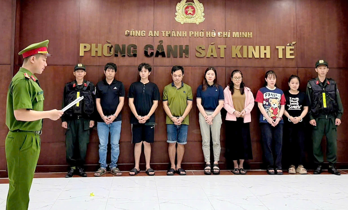 Le Thi Thuy Trang (fourth from left) and accomplices. *Photo: Ho Chi Minh City Police*