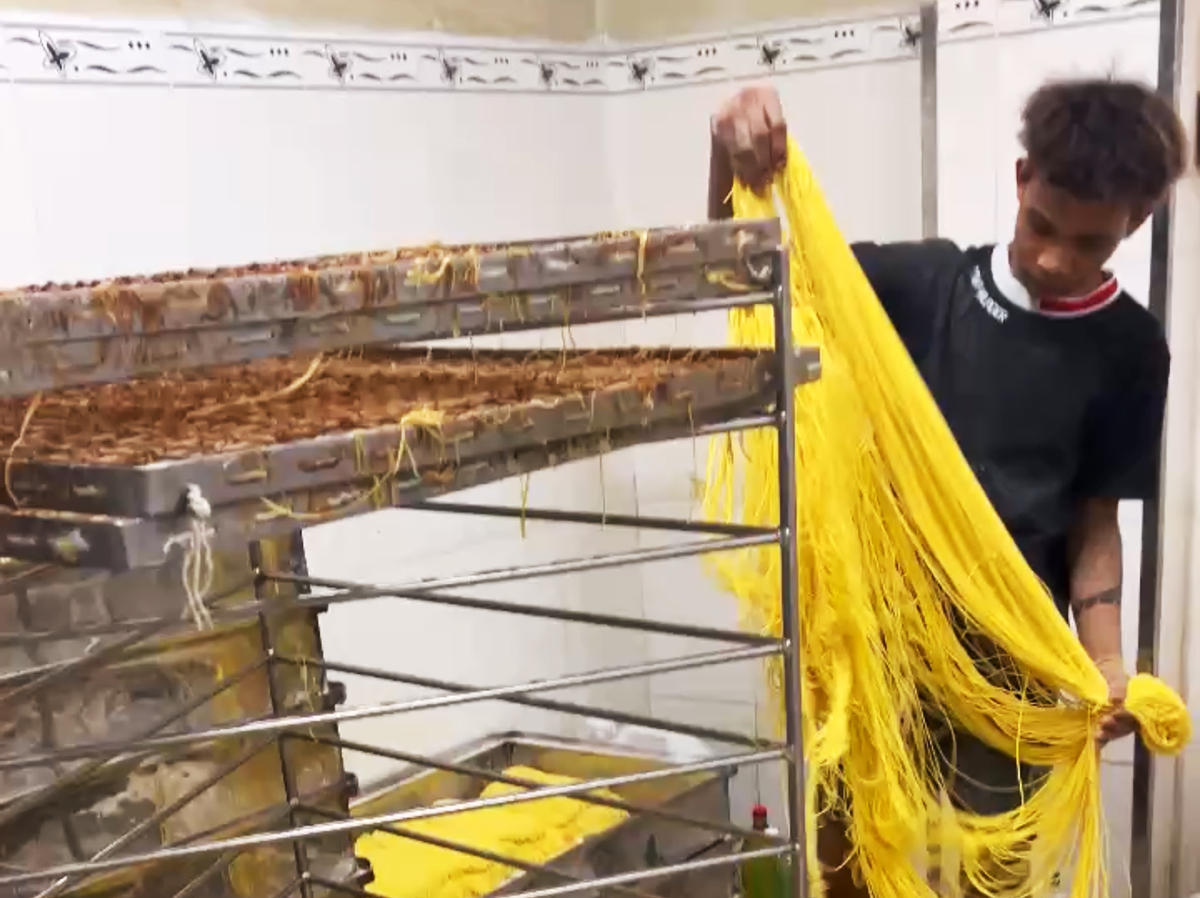 Fresh noodles mixed with color and borax being steamed. *Photo: Ho Chi Minh City Police*