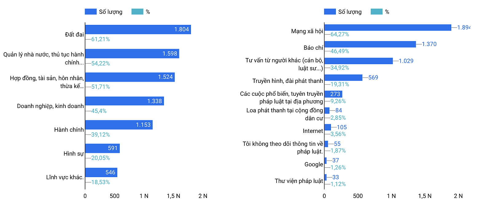The areas where people most frequently sought legal information included: land (61,21%), administrative procedures (54,22%), marriage – inheritance – property (51,71%), business – commerce (45,4%), and general administration (39,12%). These categories of regulations directly impact the rights and daily activities of citizens and businesses.