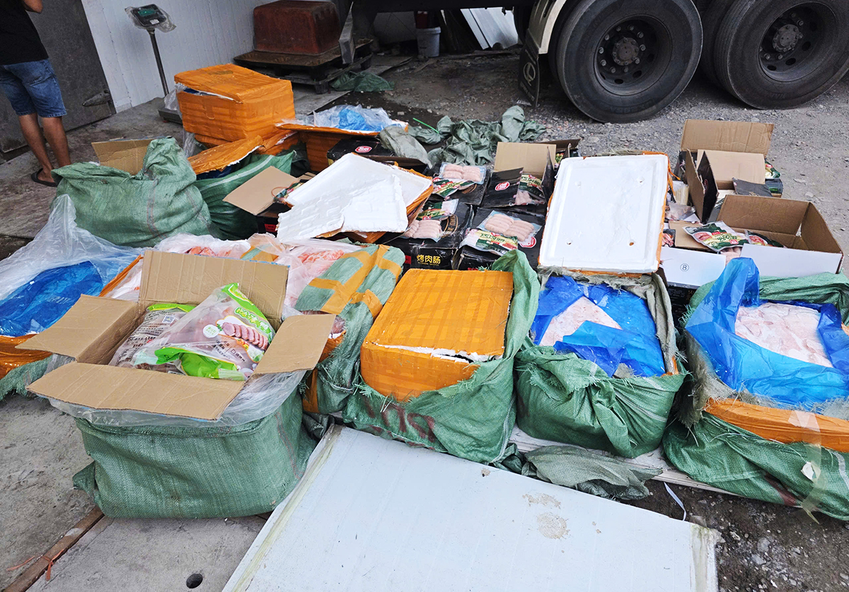 The seized goods included nearly 14 tons of pork udders, over 8,3 tons of stone-grilled sausages, 520 kg of young chicken eggs, and thousands of kilograms of goose breast, Vietnamese pork sausage, steamed buns, sausages, and pork bones.