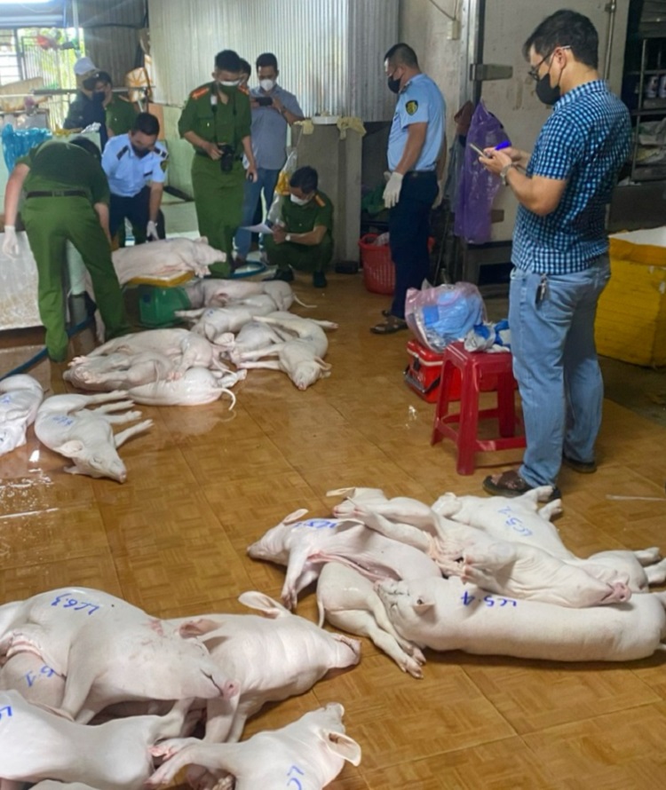 The largest case occurred in Long Phung commune, where authorities discovered Thanh, 55, buying, selling, slaughtering, and freezing nearly 14 tons of diseased and infected pigs intended for market distribution.