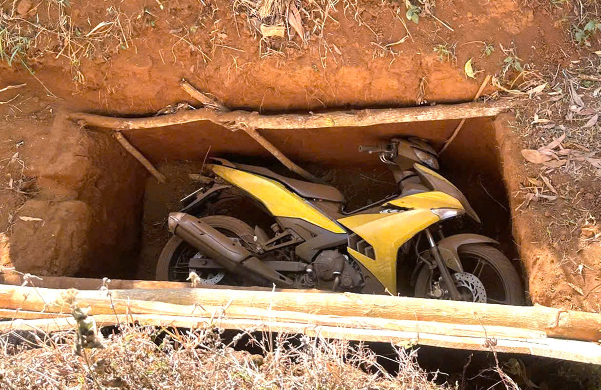 This initiative comes two days after authorities discovered an Exciter motorbike – matching the vehicle used by the two robbers during the crime – buried in a pine forest bordering Dien Phu Industrial Park (Dien Hong ward), about 5 km from the crime scene.