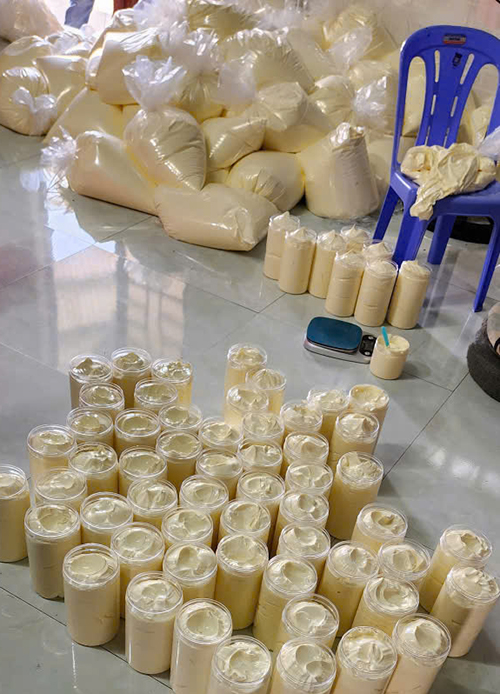 On 28/4, Thanh An communal police in Can Tho city, in collaboration with local market management forces, raided a house in B1 Hamlet. They discovered Tran Kieu Van, 36 years old, operating an illegal, large-scale production of homemade cosmetic cream.