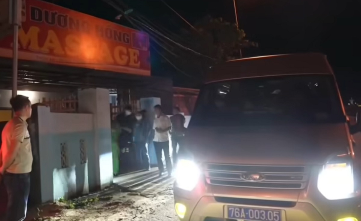 On the evening of 27/8, police raided the Duong Hong massage parlor in Van Tuong commune (formerly Binh Thuan commune, Binh Son district), operated by 45-year-old Hoang Van Nam. Inside, officers caught two couples engaging in prostitution.