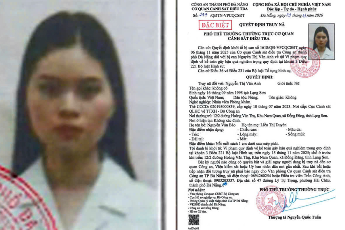 Nguyen Thi Van Anh, 31, residing in Lang Son province, the clinic's revenue and expenditure accountant, was identified as directly managing and creating two sets of irregular accounting books. This was done to legalize illegal revenue and expenditure. Her actions caused the state budget to lose over 3.9 billion dong in tax revenue. As she has fled her place of residence, the investigation agency has issued a special wanted notice for Van Anh.