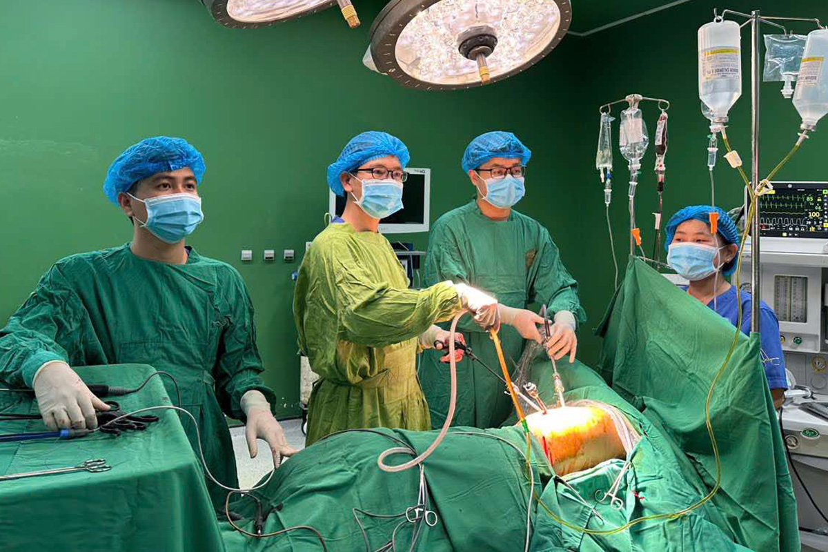 Doctors perform surgery on the student. Photo: Ngoc Oanh |