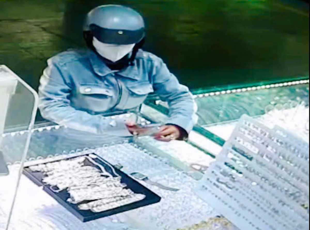 According to the investigation, yesterday afternoon, the woman, dressed in a jean jacket and helmet, approached a jewelry counter in the basement of An Dong Market. She feigned interest as a customer, continuously checking her phone.