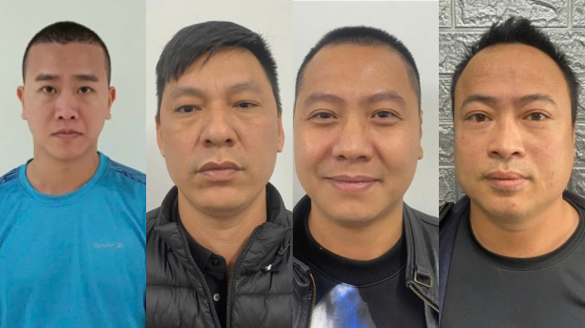 Hoang Ta Minh Cuong (in blue shirt) and the defendants. Photo: Provided by police. |