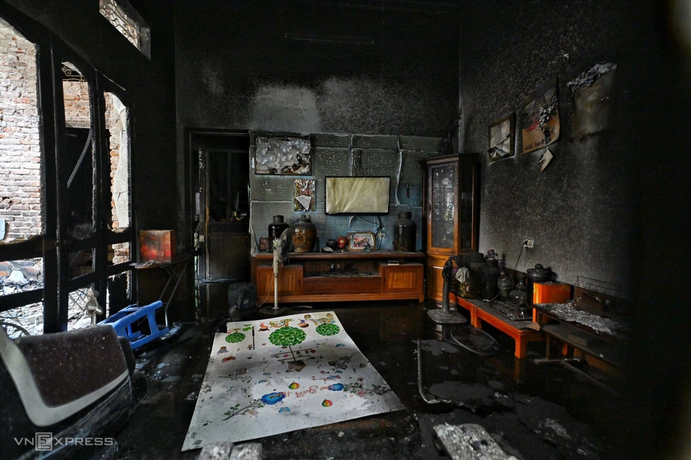 Mr. Quyet and his wife showed signs of violating fire prevention and fighting regulations, but his mother, wife, and son all died in the fire. Their house was completely destroyed.