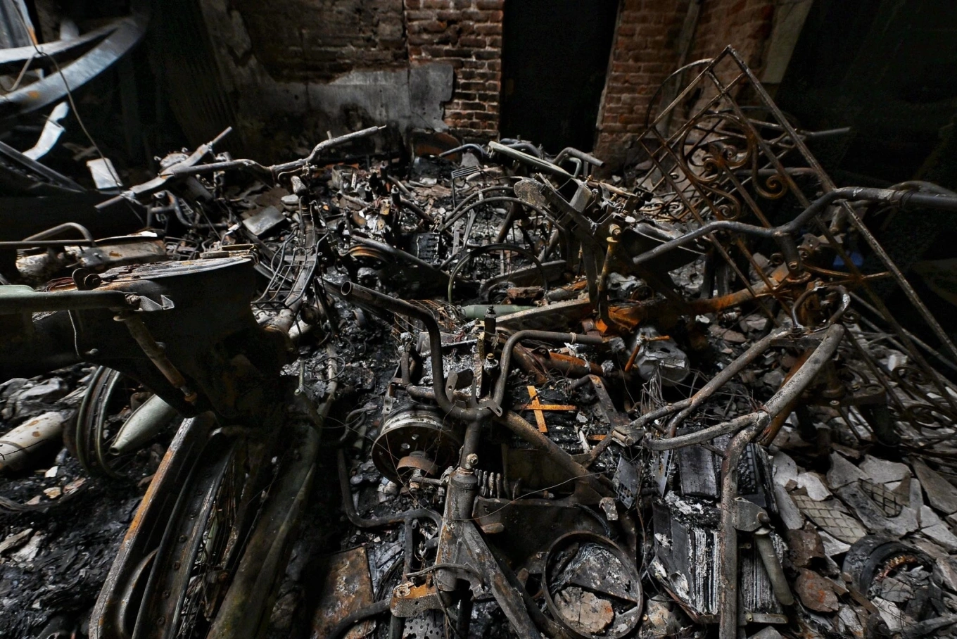 Forensic examination concluded that the fire was caused by an electrical short circuit in the power line of an electric motorcycle, igniting its insulation layer and then spreading to the surroundings.