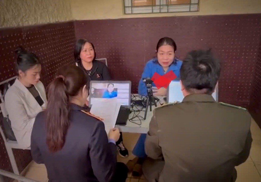 Bui Thi Kim Dung (in blue shirt) at the investigative agency. Photo: Police provided