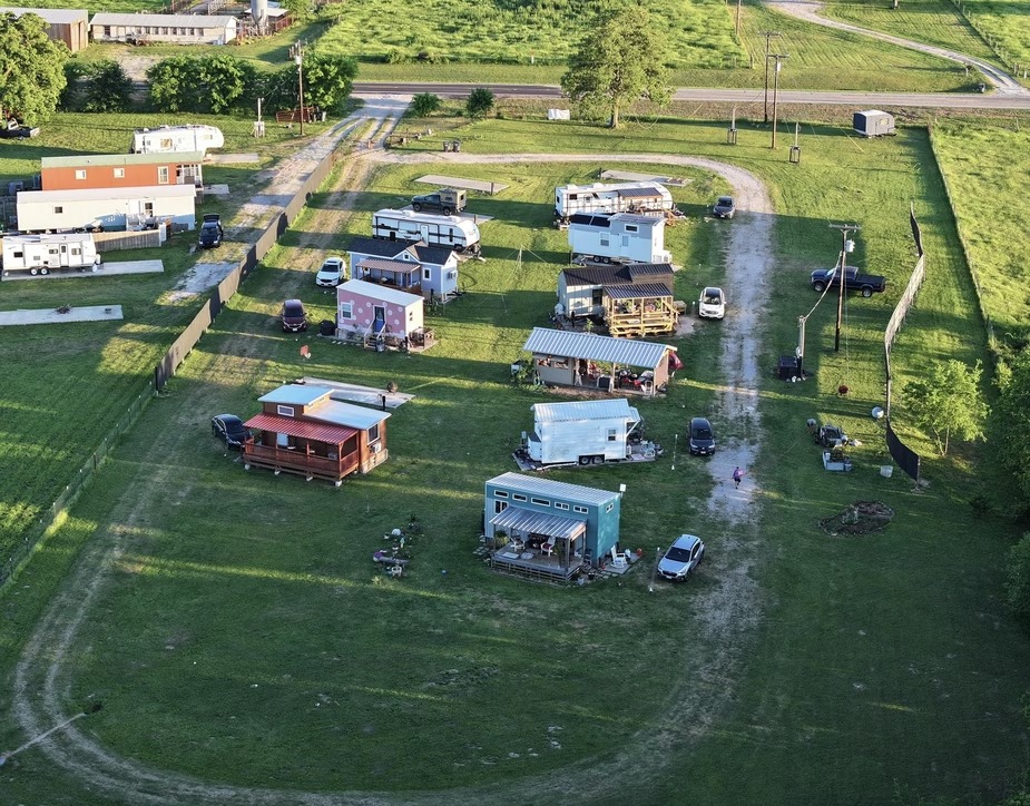 On a green lawn in rural Cumby, Texas, 12 tiny homes sit close together. In this women-only community, mostly retirees enjoy life with a swimming pool, a yoga room, a book club, and regular social gatherings.