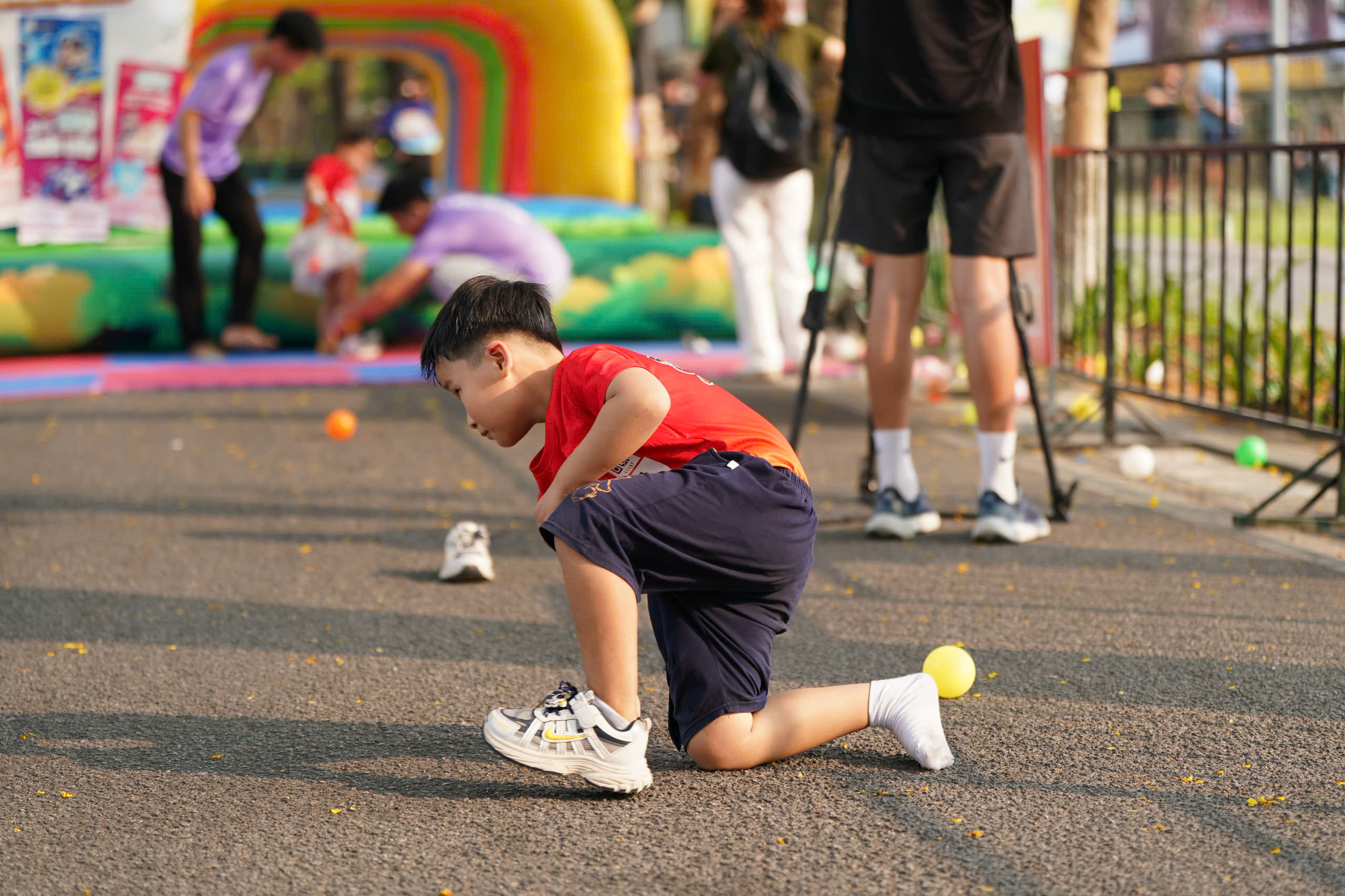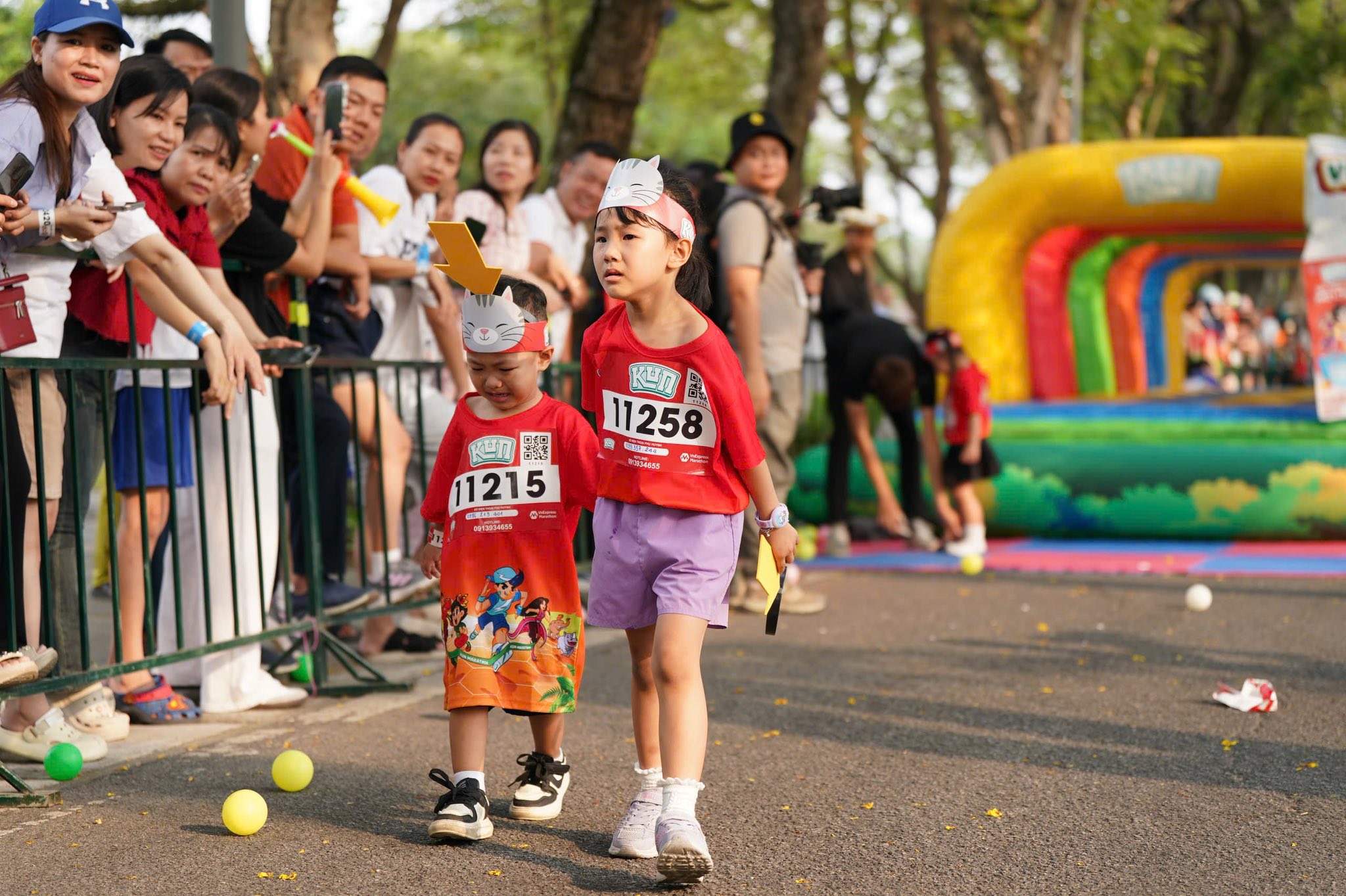 Throughout the race, participants displayed remarkable spirit. Despite instances of bursts of speed leading to stumbles, lost shoes, or even tears mid-race, all children demonstrated resilience by standing up and completing the course. A poignant moment captured Hoang Ngoc Nhi from Hue, who led her crying younger brother, Hoang Long, to the finish line. Along the sidelines, parents continuously cheered, providing motivation for the two siblings. Nguyen Phuc Nguyen, one of the 7-year-old group champions, expressed his delight at overcoming his limits and eagerly announced his intention to participate in the "Explore All Species" game zone immediately after receiving his medal.